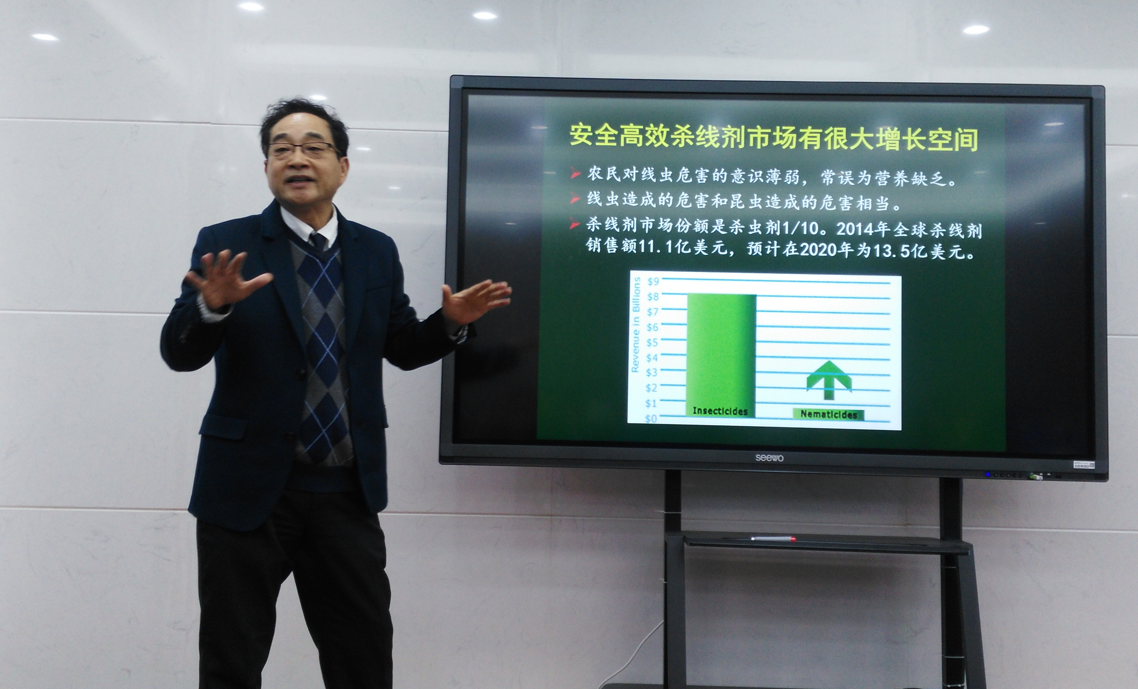 报告厅做了题为“绿色杀线剂开发和研究动态”作学术报告。