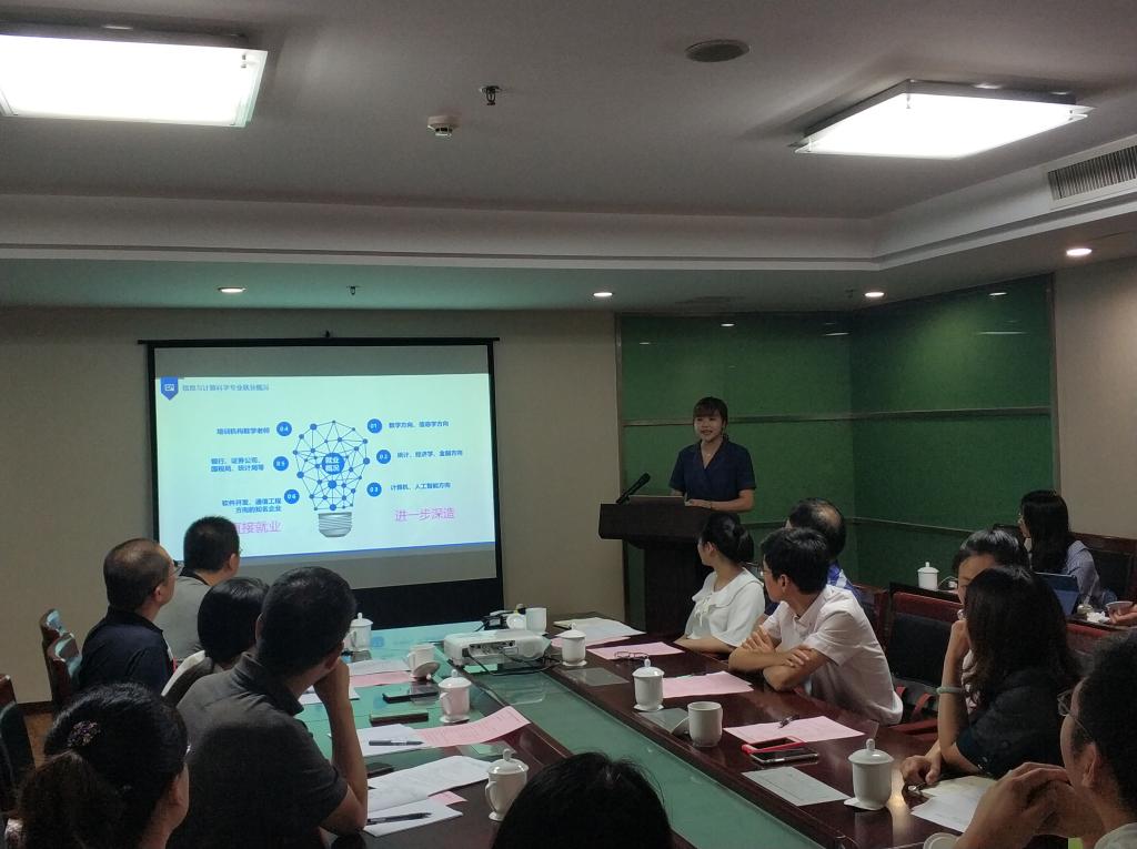 张良云教授介绍了cos色情 数学学科的现状、发展历程和教学、科研工作开展的基本情况,然后杨涛主任对cos色情 数学系信息与计算科学及统计学专业设置、培养方案等方面做详细介绍。研讨会上,周小燕老师还就cos色情 数学系线上课程建设与初步使用效果做简要介绍