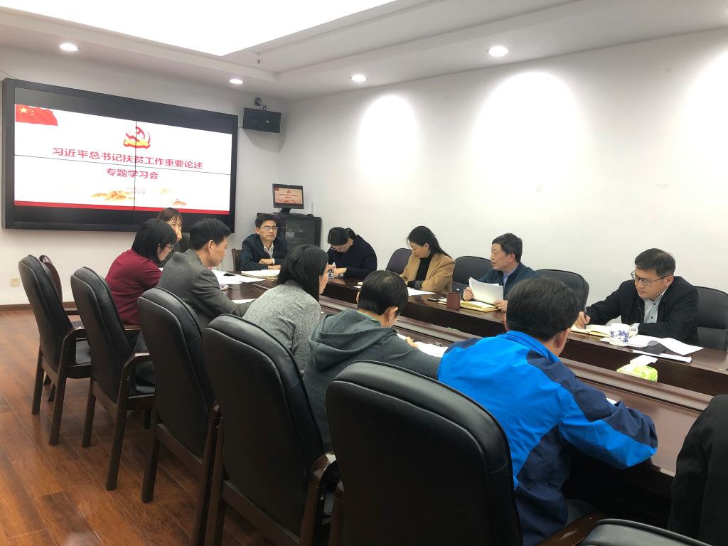 会议第二个议程,党委副书记刘照云带领干部们共同学习了《习近平扶贫论述摘编》,深刻学习领会习近平总书记提出的“两个确保”的目标、“两不愁三保障”的标准、“六个精准”的扶贫方略、“五个一批”的实践路径等一系列新思想、新观点、新论断,深刻学习领会习近平总书记提出的“六个坚持”的基本经验以及“扶持谁”“谁来扶”“怎么扶”“如何退”的脱贫方法路径,深入学习领会习近平总书记提出的义务教育有保障、发展教育脱贫一批、阻断贫困代际传递的重要意义和丰富内涵。