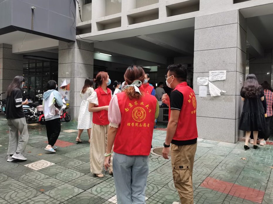 在第一轮志愿服务工作中,涌现出了一批师生典型,他们用行动彰显理学人志愿、奉献、担当的本色。党员领导干部、党支部书记、教授博导纷纷加入志愿服务队伍,率先垂范;化学系非党员教师积极报名参与志愿服务、数学系首次组织就有6名教师报名参与;数理研究生党支部主动请缨,由支部书记带队,承担全天志愿服务工作;学生党员在辅导员老师的精心组织下,在志愿服务中贡献青春力量。