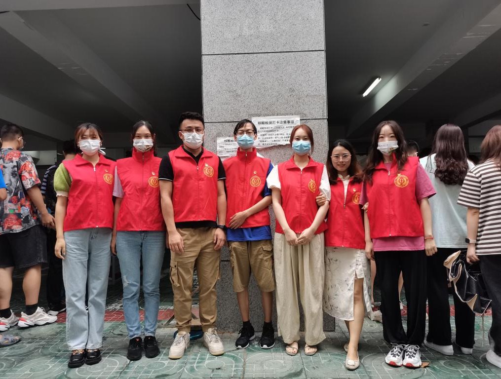 学院采取“2+4”组合岗位安排,即由2名教师和4名学生志愿者组成一个工作组,由6名志愿者完成半天的核酸检测志愿服务。党员师生统一着装,佩戴党徽,亮身份、树形象。截至目前,学院所有党支部均已参与到核酸检测志愿服务工作中。