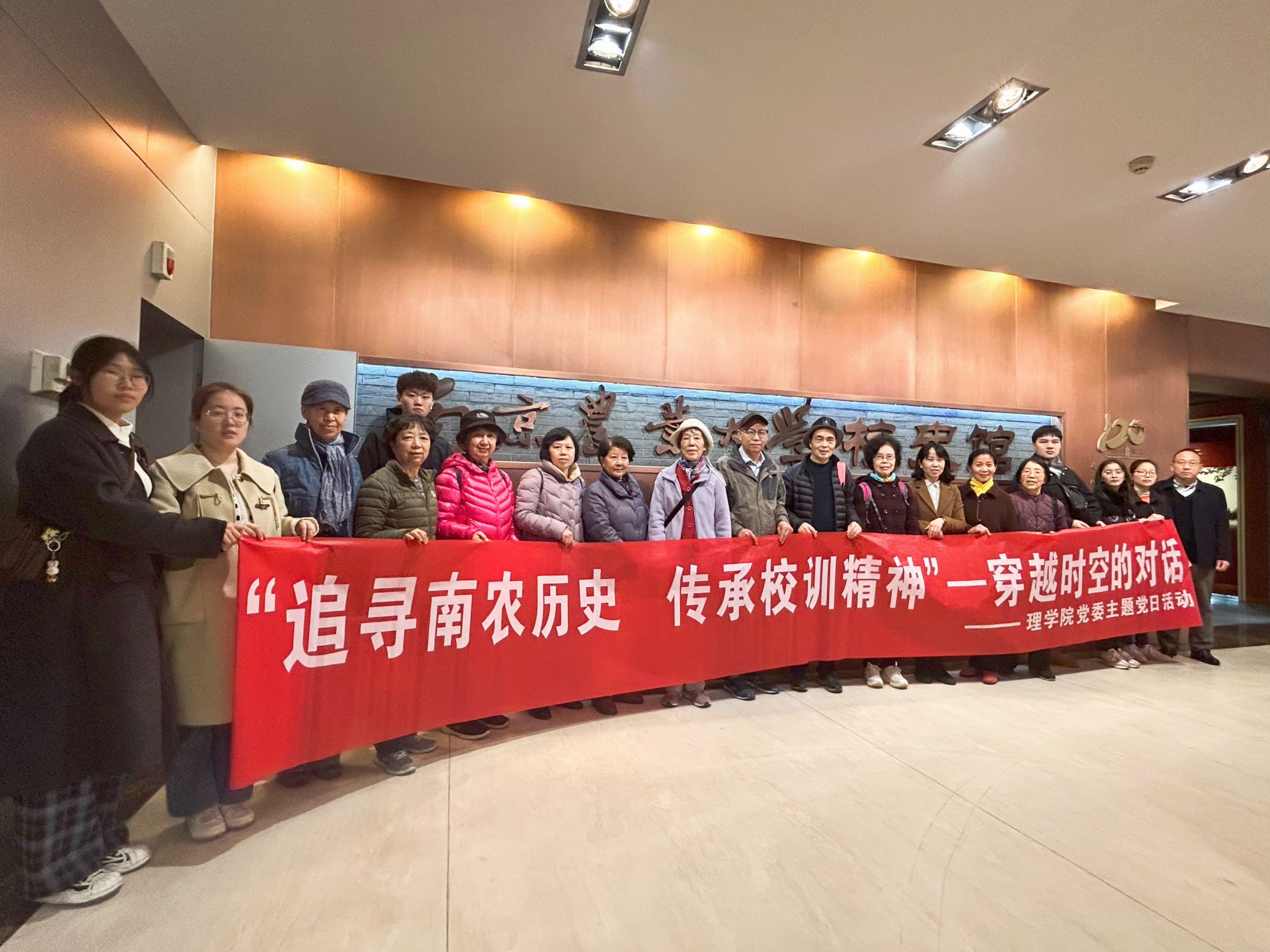 党委组织退休教师与学生党员代表,共同开展“追寻南农历史传承校训精神”主题党日活动,学院党委副书记吴彦宁(主持工作)、副书记桑运川出席活动。