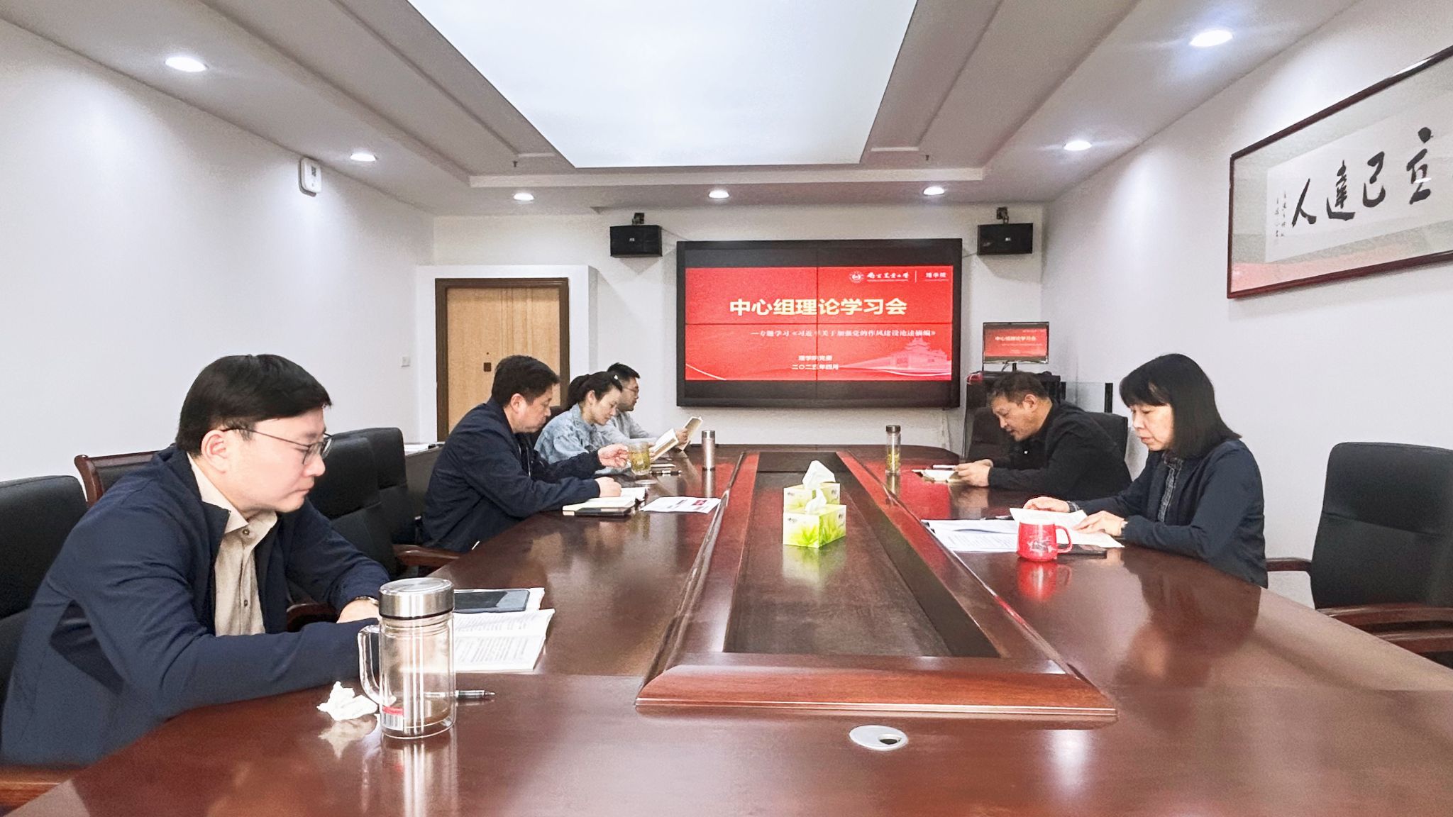 党委举办理论学习中心组学习会深入贯彻中央八项规定精神,学院领导班子成员采取领学和交流研讨相结合的方式,认真逐字逐句学习《习近平总书记关于加强党的作风建设的论述摘编》和中央八项规定及其实施细则精神,联系个人实际,交流心得体会。