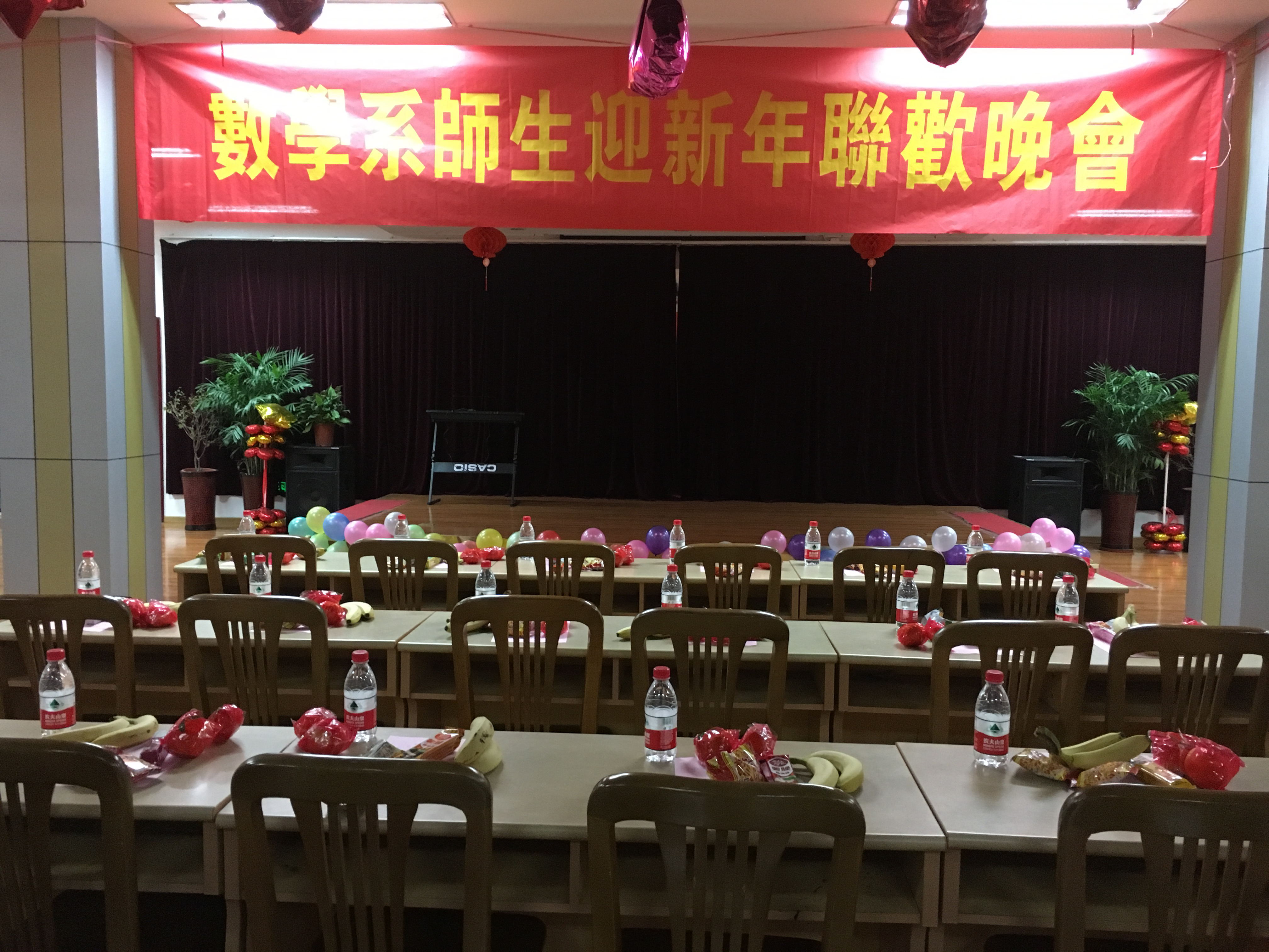 数学系师生迎新年联欢晚会在老年人活动中心正式拉开帷幕。全体数学系师生欢聚一堂。