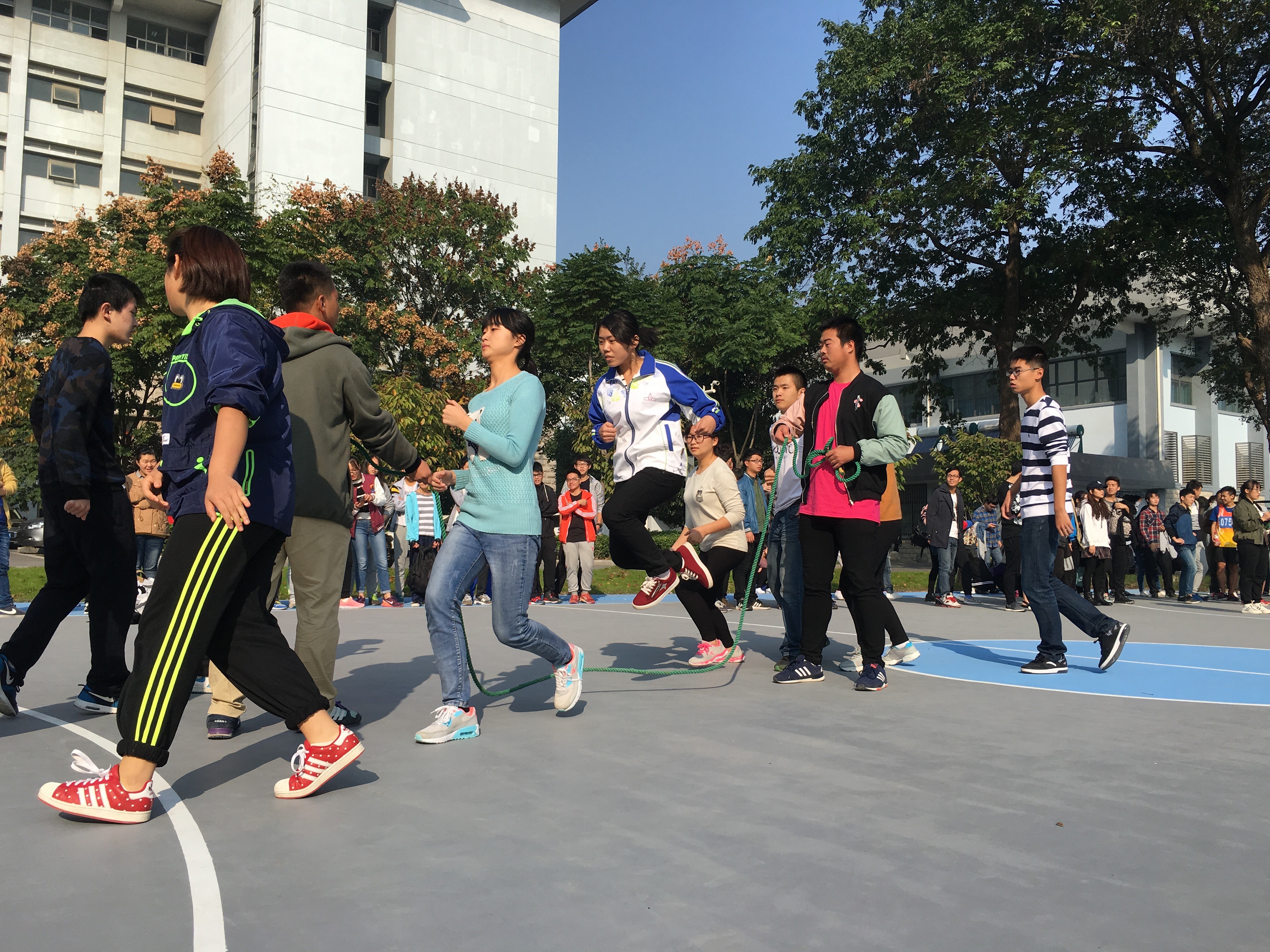 接下来是跳大绳比赛。经过平时的努力和两轮六分钟的坚持不懈,最终cos色情 拿下了542个的好成绩!虽然最后排名没有取得第一名,但是虽败犹荣,比赛的同学们团结协作的形象深深地印刻在心中。