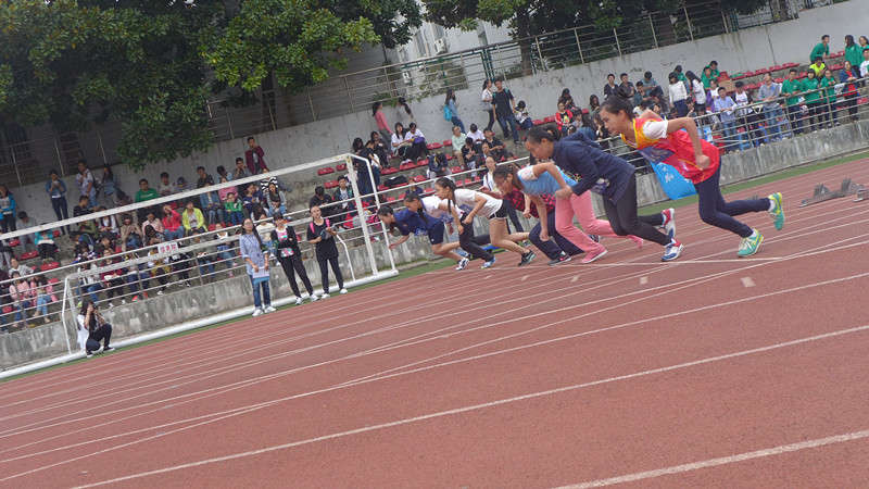 10月23日上午9:10,我校第四十三届运动会正在如火如荼地进行着,男女子100米预赛在田径场打响第一枪。