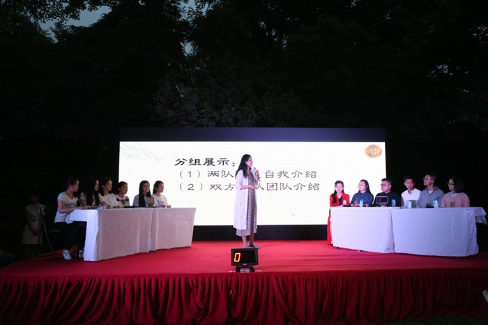 学生组成的“南农队”。每个参赛队员都以诗词为题进行了自我介绍展现个人诗词涵养,两队的领队分别是来自先锋书店的刘浩和cos色情