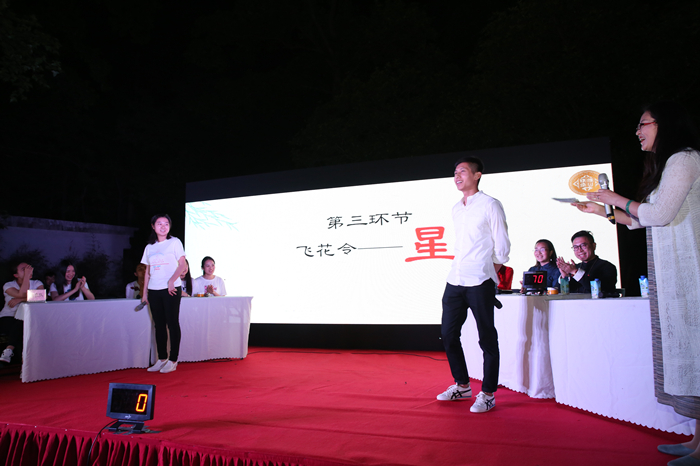 中华诗歌源远流长,博大精深,双方队员团结合作,全身心投入到比赛当中。其中看图猜诗歌环节是以南京秦淮河、乌衣巷等著名景点为题,要求选手回答对应描写的诗词,在飞花令环节中选手表现出的惊人诗词量更是引得全场观众掌声雷动。