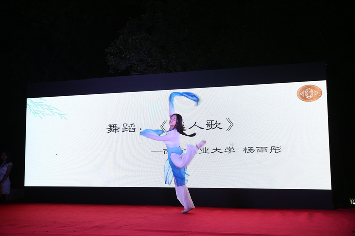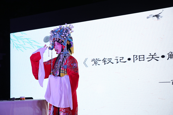 的王诗语同学和杨雨彤同学为大家表演了昆曲《紫钗记•阳关•解三酲》和舞蹈《越人歌》,灵动的唱腔和优美的舞姿令人陶醉。