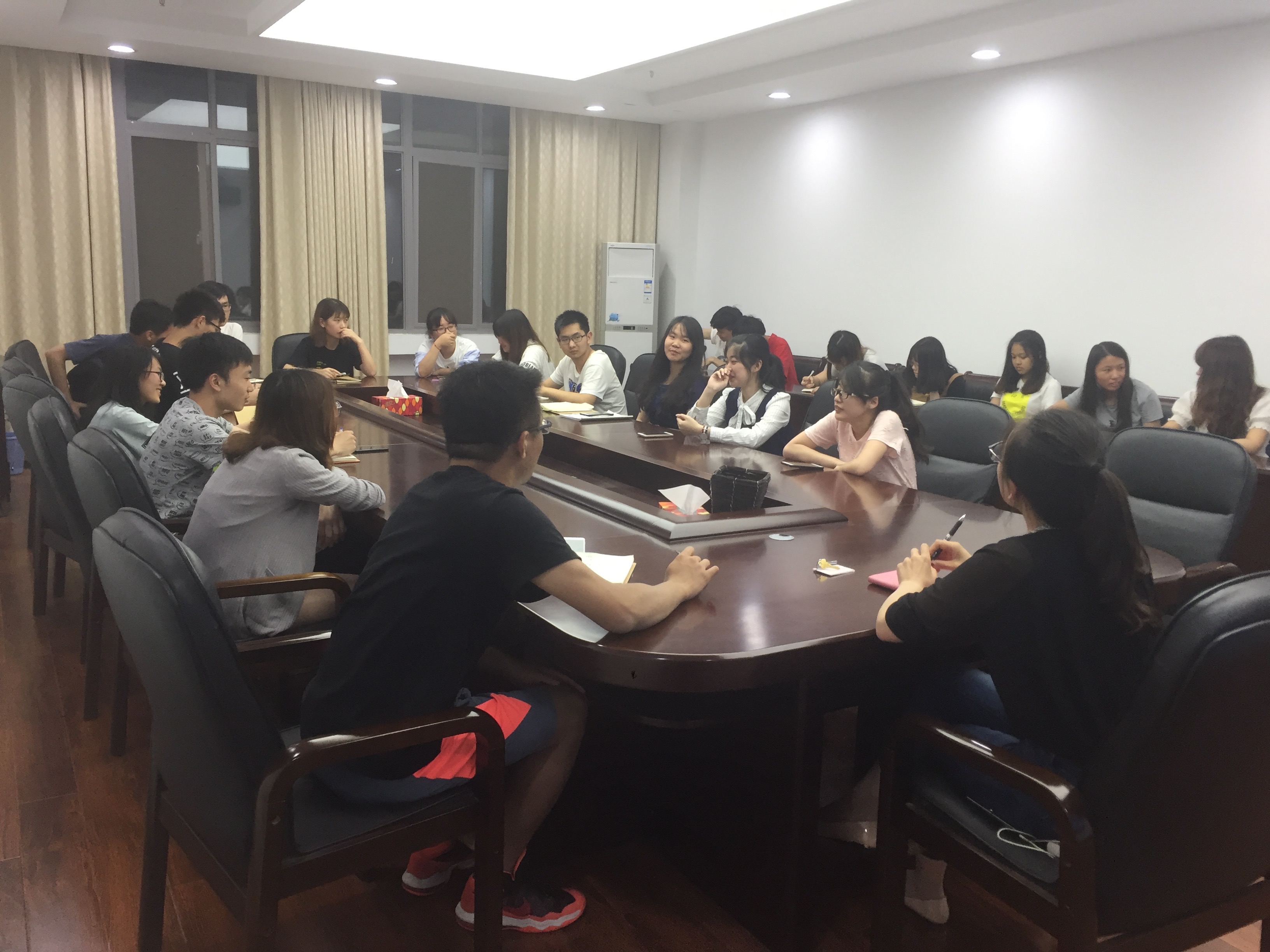 第17届团委学生会在教四楼二楼会议室进行了首次例会。此次例会由辅导员黄芳和杜超老师组织,学生会所有部门的部长和副部长均到场,分别就近期的工作和未来的计划来进行工作汇报,意在通过此次例会对团学干部进行培训要求,加强沟通各个学生部门,增进互相的了解,将以后的学生工作安排部署完善,以求提高效率,精益求精。