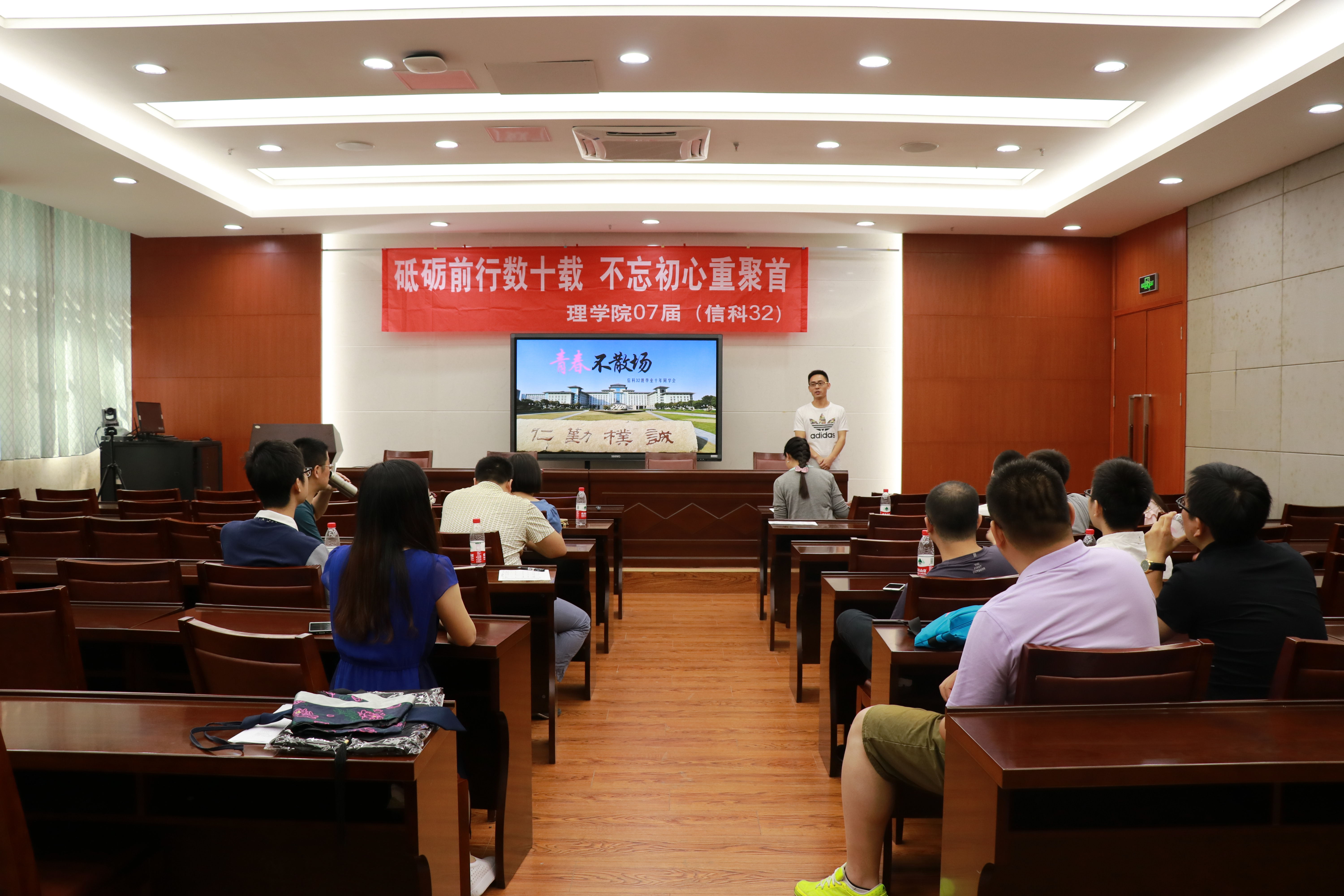 报告厅等待着这批优秀学子的到来。报告厅屏幕上放映着的是刘书记昨天晚上亲自制作的ppt,首张幻灯片上写着一句话:一颗“理学心”,一生“南农情”。老师们跟陆续到场的学长学姐们握手寒暄,之后坐下来一起回忆往事,十年光阴并没有冲淡这浓浓师生情。刘照云书记和朱震球老师看着那毕业照合影,依然能叫出同学们的名字来,在他们心中,很多记忆都不曾遗忘。