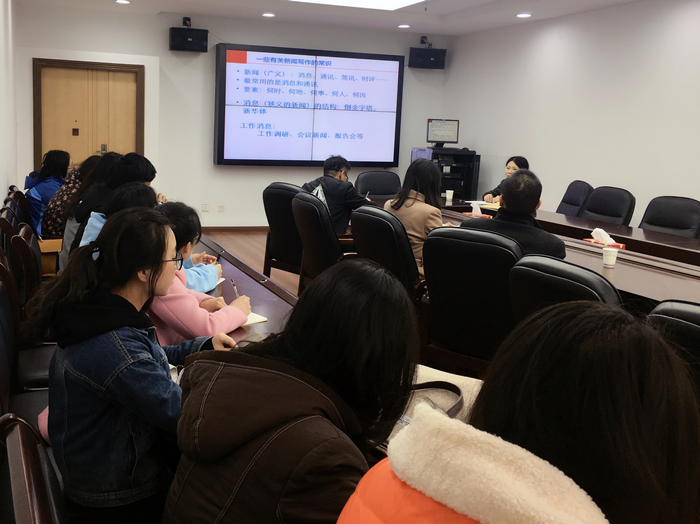据悉,为完善学院网站建设,提高师生的新闻写作能力,更加快捷高效的发布学院科研、学工动态,学院特邀专家面向学院师生开展系列专题培训。除此次新闻写作培训外,即将开展新闻图片拍摄培训等其他内容,敬请期待。