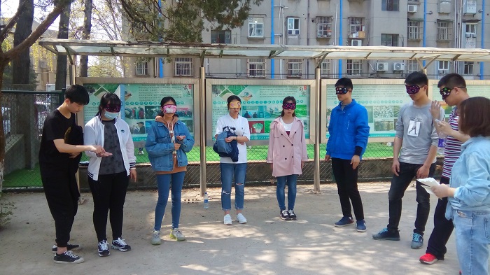 在“蒙眼猜字”环节中,小组成员一人负责写字,其余成员轮流蒙上眼,写字的同学握住蒙眼同学的手写下指定过的字,写完让蒙眼同学猜,总共猜对4个才可过关,不够4个则需派一人才艺表演,才可获得再一次挑战机会,尽管中途遇到问题需要再次挑战,但最终还是成功通关,获得下一个游戏地点的提示;每个小游戏都需要队员们集思广益,密切配合,齐心协力,共同应对才可以破解谜题。