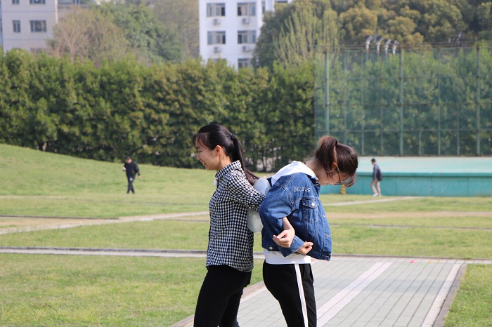 素拓活动正式拉开序幕,根据分组,每组队长需要根据自己小组得到的游戏提示依次在校园里找到7个据点,在每个点完成相应的任务后才能获得下一个地点的有关提示;所设游戏据点有“头脑风暴”、“经典咏流传”、“蒙眼猜字”、“迎面接力”、“校歌接龙”、“眩晕射门”、“咔擦抱树”7个游戏项目,每个游戏都需要队员们的共同努力才可以完成,考验成员们的团结合作能力。