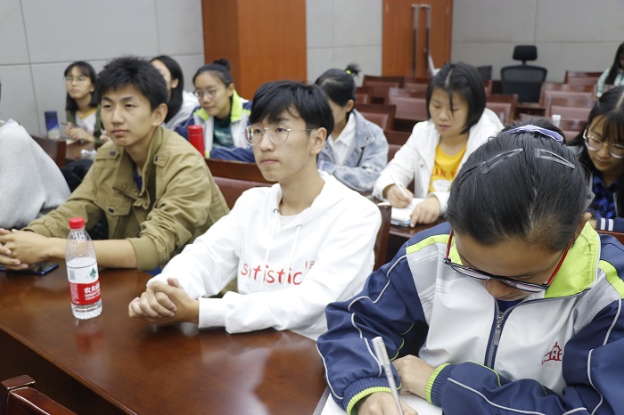 首先,由李爱萍老师对本次讲座进行了大致的介绍,宣布讲座开始。紧接着,肖老师向同学们简要介绍统计学专业,详细解读培养方案,此外,肖老师还介绍了一些学好专业知识的方法,并且对统计学专业就业前景做了分析,在场的同学们都受益匪浅。之后,李强老师着重介绍了统计学专业学生的发展前景,还分享了自己对于直接就业与读研深造的看法,建议同学们继续深造。接着,刘照云老师列举了一些往年其他专业学生转入统计学专业的例子,肯定了同学们选择统计专业进行学习的决定,表达了对同学们未来学习生活的殷切期盼。