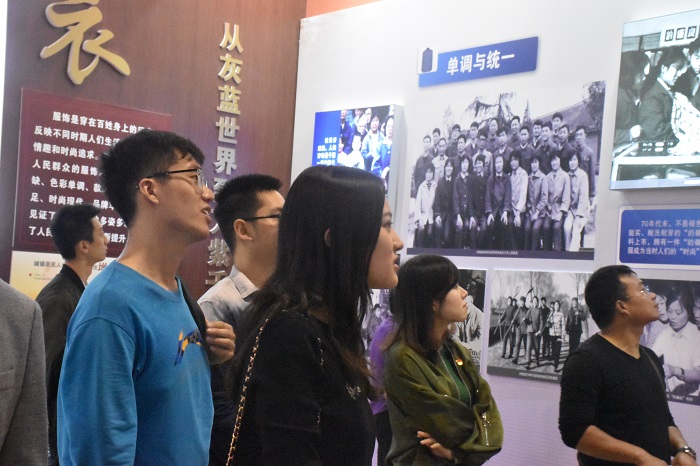 接着向前是历史穿越长廊,展示了从“票证时代”到“电子时代”的时代变迁,看到了人民生活在衣食住行用五个方面的巨大变化。衣,由单调的灰蓝世界转变到个性时尚的万紫千红;食,从食物短缺到食疗养生;住,由住有所居到住有宜居的居住理念过渡;行,展现了人民群众经步行,自行车,绿皮火车到现如今开私家车,乘地铁,民航的立体出行的巨大变化。