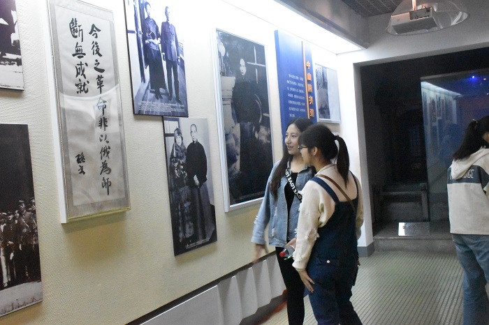 走进孙中山纪念馆,引人注目的是在楼前广场正中花台上竖立的孙中山先生全身铜像,该铜像高约2.9米,以孙中山先生向民众发表演说姿势为造型,气势磅礴,栩栩如生。走进馆内,现场气氛庄严肃穆,在大厅中央可以看到矗立的一座孙中山半身铜像,神态逼真,令人直生敬仰之情。二楼陈列着的是镌刻孙中山先生《建国大纲》的木匾和反映孙中山先生革命生涯的油画,这些油画以孙中山先生领导和发动的民主革命的历史为主线,选择部分重大事件,着重刻画了孙中山先生的杰出历史成就,反映了当时风起云涌的群众革命运动,给来参观的同学以深刻的启示和历史教育。