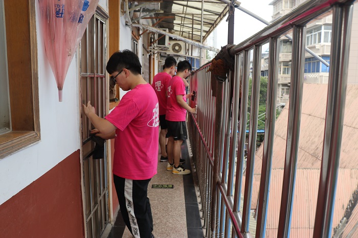 7月16日至18日,老年公寓实践团队去到了美林老年公寓开展实践活动。每天上午,队员们在学校集合好后,一起乘坐公交车去往美林老年公寓。尽管正值暑期,天气炎热,队员们依旧兴致高涨。到达美林老年公寓后,实践团队负责人先和老年公寓的院长说明了来意,确保了可以展开实践活动,然后实践团队才进入老年公寓。队员们和坐在大厅的爷爷奶奶们有礼貌地打了招呼,爷爷奶奶们也很热情地笑着回应大家。院长给实践团队布置了一些简单的劳动任务,队员们也很快地投入劳动中。有人拿着抹布细致地擦拭门窗、窗台、栏杆,有人拿着拖把认真地拖地。劳动任务完成后,队员们将劳动工具放回原处,随后就开始陪伴老人。由于有一些老人在房间内休息,不方便去打扰他们,所以队员们基本上是陪一楼大厅的老人们聊聊天。老人们年纪大了,表达能力有些弱,再加上很多老人都是说的方言,从外地来南京读书的队员们不太能听懂,所以交流并不是很顺畅。其实队员们来和老人聊天更多的是倾听和陪伴,老人们有人陪着、有人听他们说说话就会很开心。在实践活动进行的过程中,各小组也逐步展开了专访活动。组长先提前和专访对象进行沟通,向专访对象解释了本小组的专访任务,在取得专访对象的同意后,开始了专访活动。在专访过程中,有一人负责向专访对象提问、一人负责做专访的过程记录、一人负责拍摄专访视频、一人负责拍摄照片。和老人们相处的时光很愉快也很短暂,到了中午,实践团队也要回学校了。
