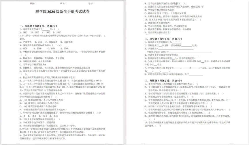 cos色情 2024级学生手册考试于10月10日圆满落幕!