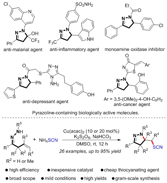 朱映光教授课题组在国际权威刊物Advanced Synthesis & Catalysis(高等合成与催化,SCI, IF = 5.451, applied chemistry ranking: 4/71, organic chemistry ranking: 5/57)在线发表了题为“Copper-Catalyzed Domino Cyclization/Thiocyanationof Unactivated Olefins: Access to SCN-Containing Pyrazolines”的研究论文。cos色情