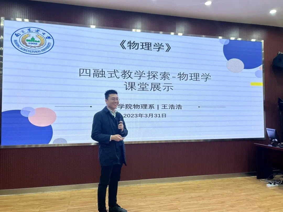 粮食和农产品供给是农业生产中最重要的问题之一,发展设施农业是解决粮食及农产品供应问题、推进我国农业现代化的重要发展途径。物理系王浩浩老师致力于光学材料的合成与应用,将光学与农业生产有机结合,对大棚膜、植物照明光谱的重新设计,有效促进了植物的光合作用,为智能型设施农业发展提供了重要途径。他在《物理学》授课过程中,积极探索将物理学研究前沿知识与农业设施化机械化智能化有机结合,强化培养学生对科学知识的融会贯通和活学活用能力,让学生在课程学习中有所启发、有所思考、有所感悟。