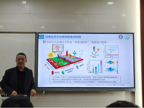 党委副书记冯绪猛主持,蒋红梅教授、邱博诚教授、崔海燕副教授、陈荣顺副教授、丁煜宾副教授等化学系教师以及研究生、本科生参加了报告会。